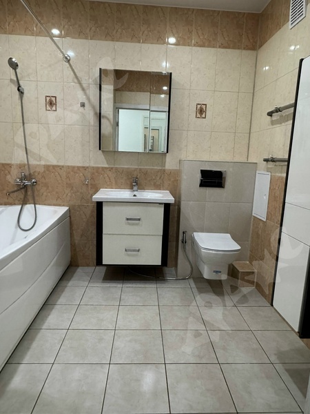 В ванной комнате есть стиральная машина, электрический полотенцесушитель, в просторной душевой кабине - многофункциональная душевая система.