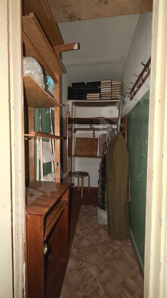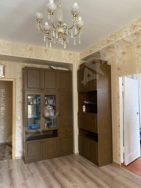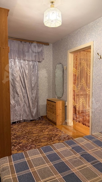 Квартира на 4 этаже из мебели есть диван, камод, шкаф купе, кухонный гарнитур с духовкой и плитой, стиральная машина, кухонный стол, стулья, холодильник.