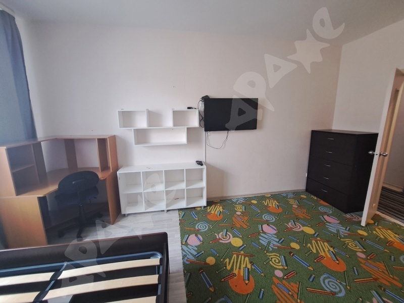 S = 38 м2, сделан ремонт и укомплектована всем необходимым. Хорошая мебель Икеа: шкаф, вешалки, диван-кровать, комод, стеллажи, обувница, большой рабочий стол, кухонный стол, табуретки, шторы блэкаут.