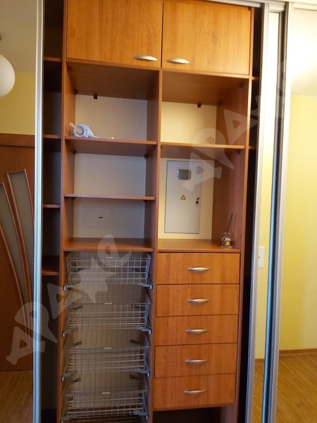 Мебель (встроенный шкаф, кровать, стол, стулья, кухонный гарнитур, комод, зеркало и полочки в санузле)