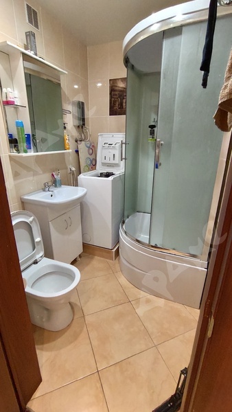 В ванной теплый пол и водонагреватель на случай отключения горячей воды (бывает один раз летом на 1-3 дня), стиральная машина с вертикальной загрузкой.