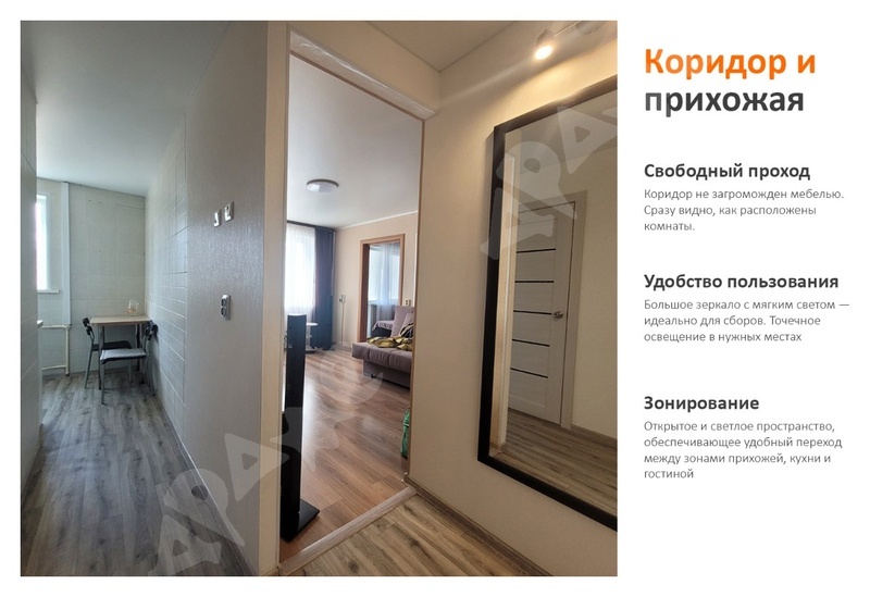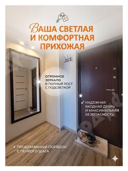 В квартире есть все для проживания заезжай и живи : много шкафов для хранения вещей , комоды , диван , кресла , холодильник , микроволновка, стиральная машина, телевизор ,кровать , все соответствует как на фото. Отдельная секция на две квартиры , в секции много места для хранения (коляски, самоката и т.д.)