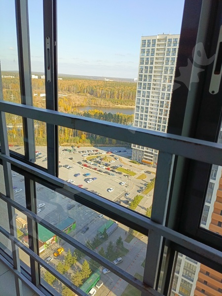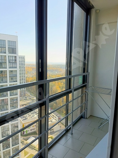 Застеклённый не большой балкон. Вид на горнолыжный склон Уктус. ЖК комфорт с закрытым двором и охраной.