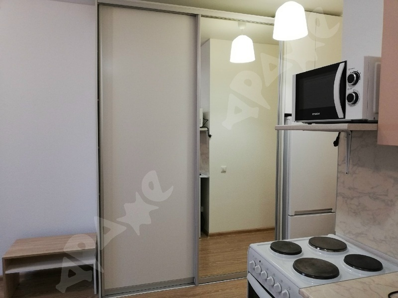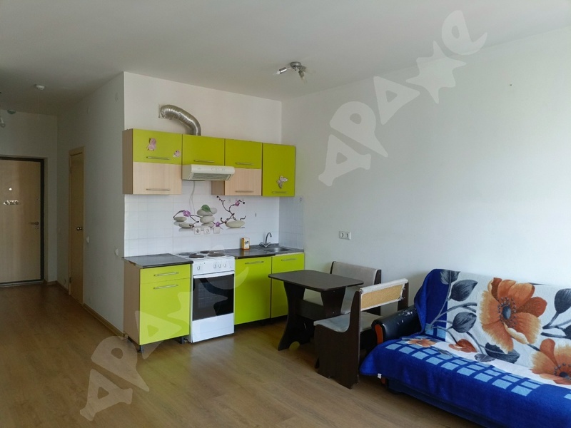 Сдается на длительный срок новая, со свежим ремонтом и мебелью квартира-студия в современном районе. Квартиру изначально планировали сдавать посуточно, поэтому есть все и даже больше: фен, банные полотенца, постельное белье,утюг, посуда, столовые приборы, бокалы,стаканы на 4 персоны,новая сковородка ,кастрюля ,новое ведро швабра .В квартире есть вся необходимая техника: холодильник, микроволновая печь, чайник, смарт-ТВ, стиральная машина, фен,