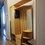 Большой открытый шкаф у входа — для одежды и всего, что ждет порядка