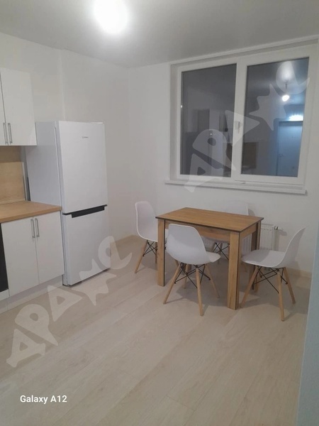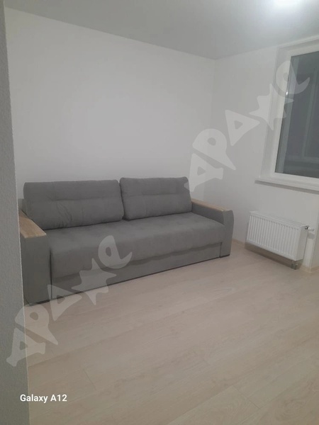 Квартира на 15-м этаже, из мебели есть прихожая, кухонный гарнитур, холодильник, кухонный стол, стулья, диван. Совмещенный санузел, стиральная машина. Балкон. Всё как на фото.