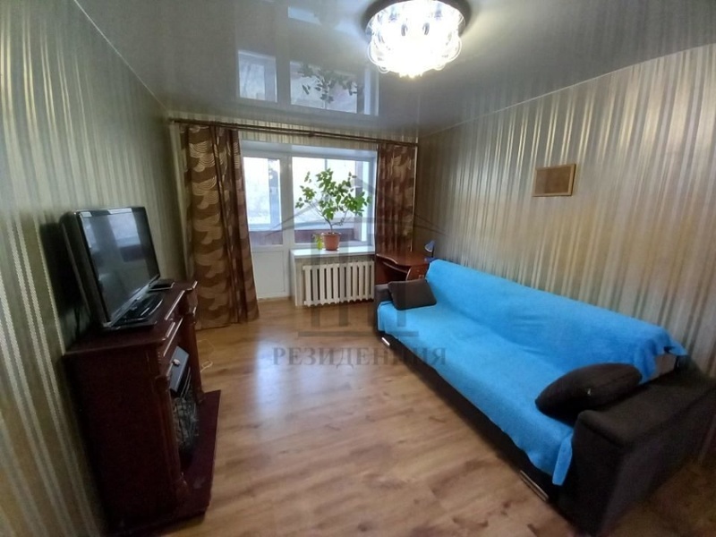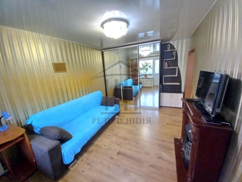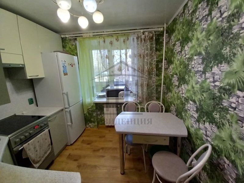 Квартира на 4 этаже из мебели есть диван, камод, шкаф купе, кухонный гарнитур с духовкой и плитой, стиральная машина, кухонный стол, стулья, холодильник.