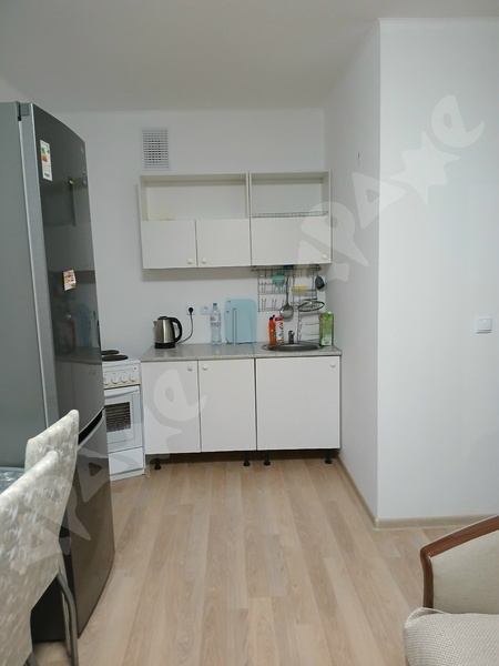 S = 38 м2, сделан ремонт и укомплектована всем необходимым. Хорошая мебель Икеа: шкаф, вешалки, диван-кровать, комод, стеллажи, обувница, большой рабочий стол, кухонный стол, табуретки, шторы блэкаут.