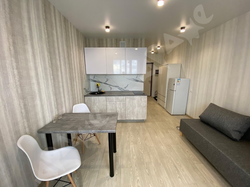 Сдается на длительный срок новая, со свежим ремонтом и мебелью квартира-студия в современном районе. Квартиру изначально планировали сдавать посуточно, поэтому есть все и даже больше: фен, банные полотенца, постельное белье,утюг, посуда, столовые приборы, бокалы,стаканы на 4 персоны,новая сковородка ,кастрюля ,новое ведро швабра .В квартире есть вся необходимая техника: холодильник, микроволновая печь, чайник, смарт-ТВ, стиральная машина, фен,