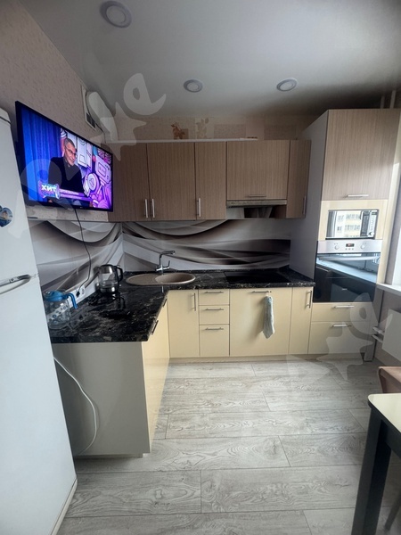Квартира на 13-м этаже, в подъезде консьерж, санузел смежный, ремонт косметический как на фото, из мебели есть двуспальная кровать, диван, 2 больших шкафа, кухонный гарнитур. Стол, стулья, из техники - стиральная и посудомоечная машина, холодильник.