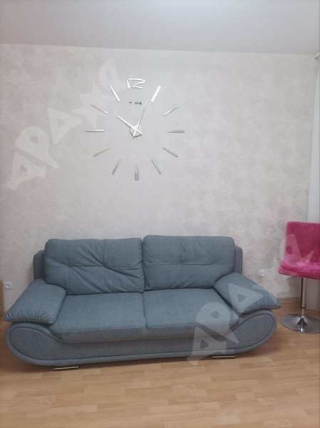 Квартира на 9-м этаже, из мебели (В кухне - кухонный гарнитур, посудомоечная машина, чайник, микроволновая печь, холодильник, барная стойка, посуда, электрическая плита, фильтр для питьевой воды. В спальной зоне – новый диван с ящиком, шкафы, текстиль. В ванной: большая ванна, стиральная машина, унитаз, раковина. Есть гардероб с огромным зеркалом в пол.)