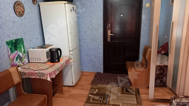В комнате: диван шкаф,тумба ,стол, вешалка, холодильник,телевизор, микроволновая печь . На кухне шкафчик и стиральная машина для личного пользования.