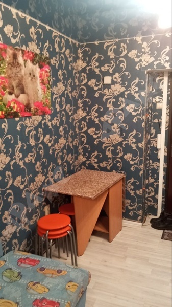 12 кв.м, этаж 7/9. В комнате есть всё необходимое для жизни: мебель, холодильник, плита, посуда, личная стиральная машина стоит в общей секции.