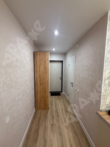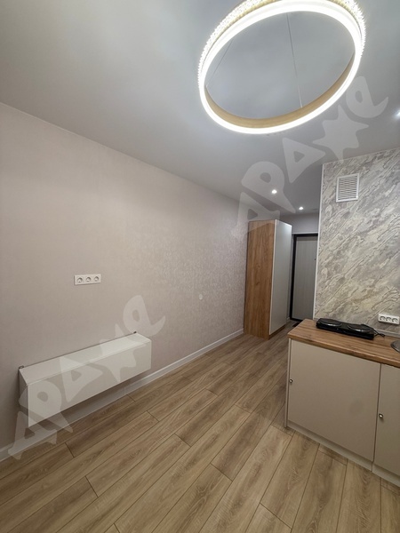 Просторная студия площадью 34 м² ждет вас! Внутри все готово для комфортной жизни: современная кухонная зона с холодильником и электрической плитой, двухспальная кровать, стол со стульями, наличие шкафа а также необходимые удобства — стиральная машина, утюг и сушилка для белья. Здесь есть все, чтобы вы могли просто зайти и жить!
