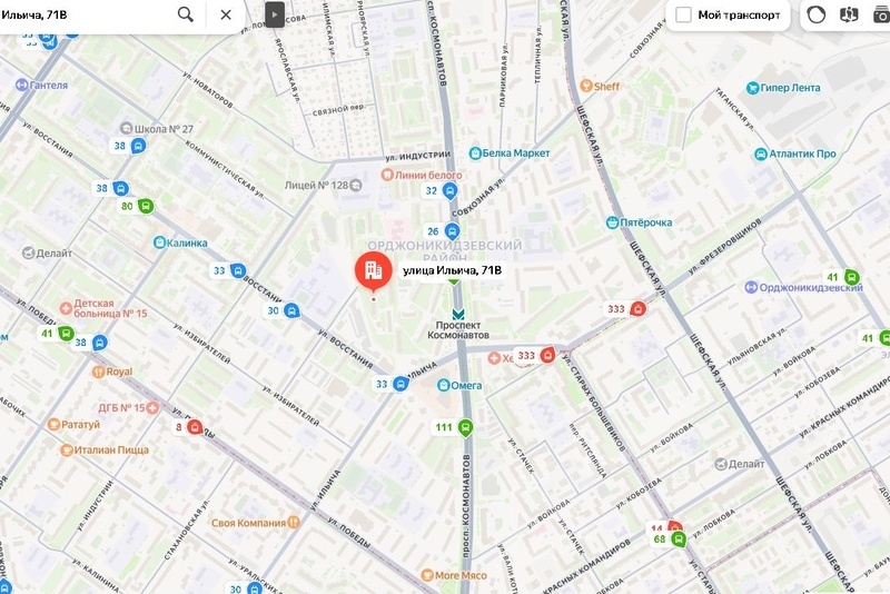 Напротив торговый центр Victory Mall, в 10 минутах ходьбы станции метро Уралмаш и проспект Космонавтов, в 3-5 минутах остановки трамвая, автобусов.