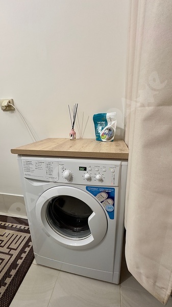 В ванной комнате находится стиральная машинка. Вся квартира чистая и ухоженная, здесь всегда приятно проводить время.