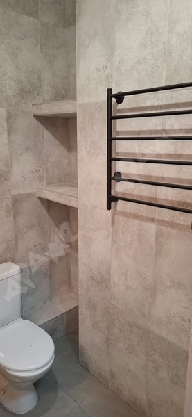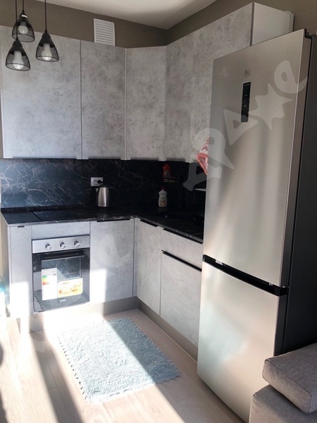 В квартире сделан качественный ремонт, санузел в плитке, кухонный гарнитур с раковиной и варочной поверхность, стиральная машина, пенал в ванной, холодильник, микроволновка, диван, шкаф, кухонный стол, кухонные стулья.