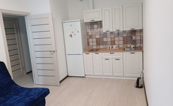 Площадь квартиры 38 кв. м., этаж 11/16. Из мебели кухонный гарнитур, холодильник, эл. плита (с духовкой), стиральная машина, обеденный стол со стульями, в комнате шкаф. Квартира сдается на длительный срок. В шаговой доступности остановки общественного транспорта и магазины. Территория дома огорожена, большая детская площадка.