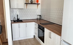 Из бытовой техники есть плита индукция, духовой шкаф, холодильник, стиральная машина.