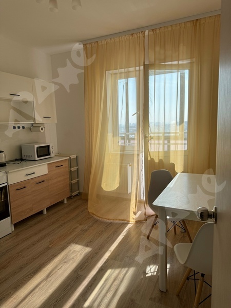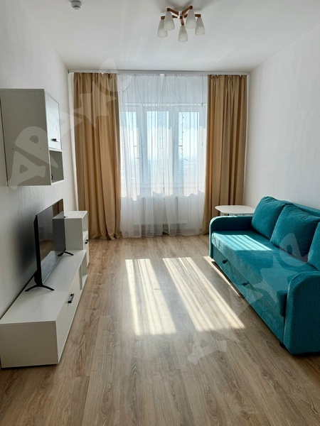 Площадь квартиры 38 кв. м., этаж 11/16. Из мебели кухонный гарнитур, холодильник, эл. плита (с духовкой), стиральная машина, обеденный стол со стульями, в комнате шкаф. Квартира сдается на длительный срок. В шаговой доступности остановки общественного транспорта и магазины. Территория дома огорожена, большая детская площадка.