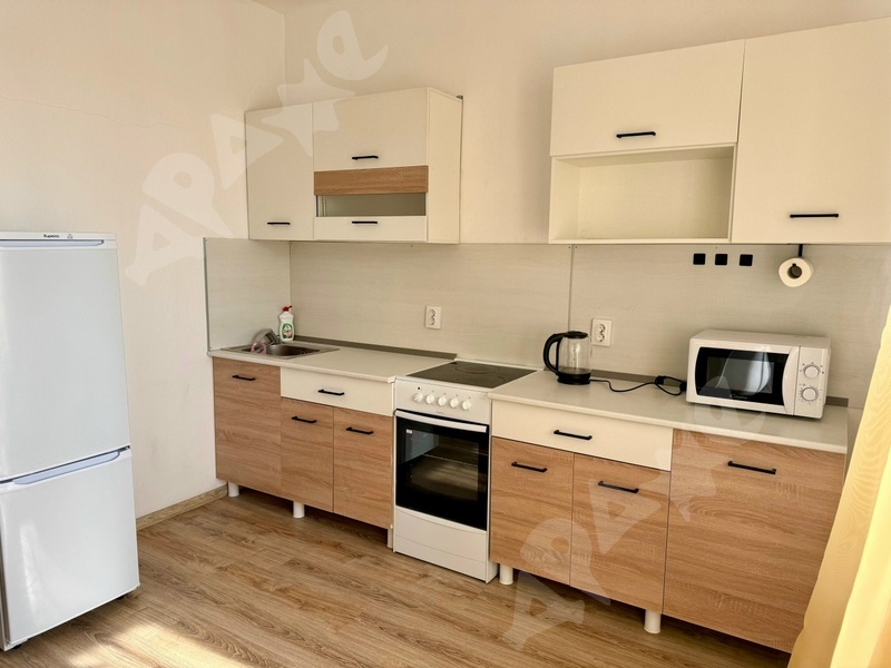 Новый дом. В квартире новая мебель. Есть все необходимое для проживания: шкаф-купе, кухонный гарнитур, микроволновая печь, электрический чайник, плита, стиральная машина, кровать.