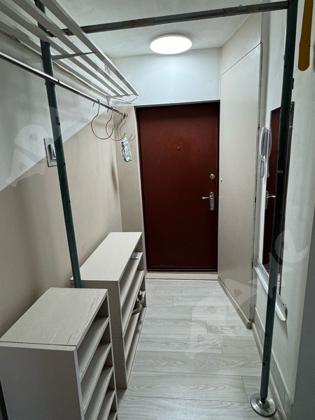 В квартире 2 дивана, в прихожей вместительный шкаф-купе, шкаф в маленькой комнате. На кухне вся необходимая мебель: небольшой гарнитур, стол, табуретки, холодильник, плита газовая. В ванной тумба и стиральная машина с сушкой. Есть счетчики на воду и электричество.