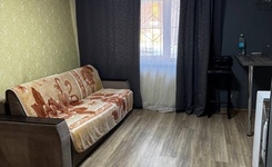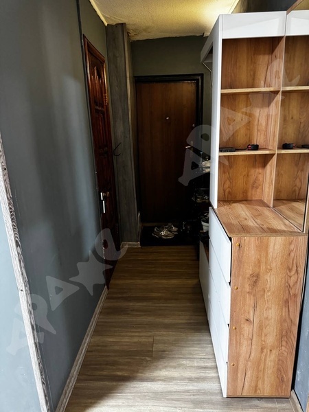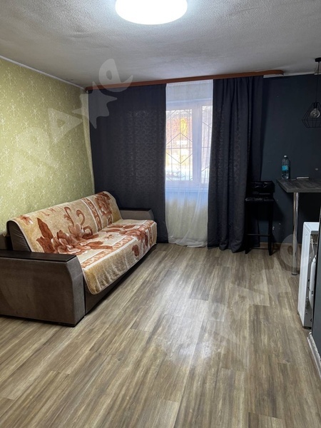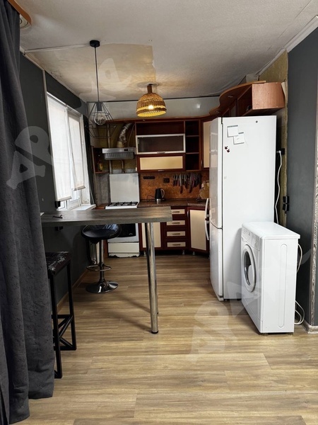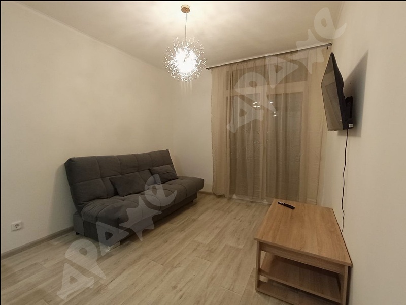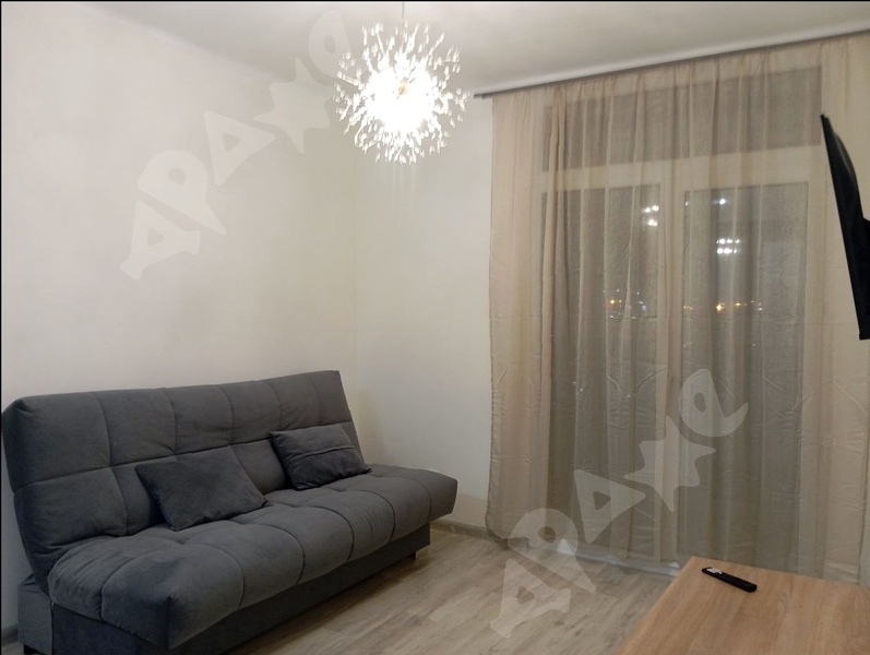 Квартира на 15-м этаже, из мебели есть прихожая, кухонный гарнитур, холодильник, кухонный стол, стулья, диван. Совмещенный санузел, стиральная машина. Балкон. Всё как на фото.
