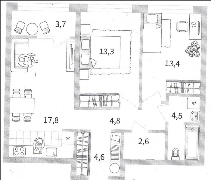 2х комнатная квартира 62 метра.