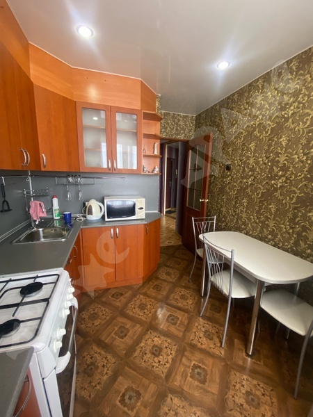 Из мебели в наличии 2 дивана,кухонный гарнитур, стол, стулья, 2 шкаф-купе, из техники- холодильник, газовая плита, электрический чайник, стиральная машина, пылесос, утюг. Также есть вся необходимая для проживания посуда , а также постельное бельё. В квартире сделан качественный ремонт. Стеклопакеты. Балкон остеклен. В шаговой доступности торговый центр GoodMart, детские сады, школы, магазины, остановки общественного транспорта, а для владельцев авто- удобная транспортная развязка. Хорошие соседи.