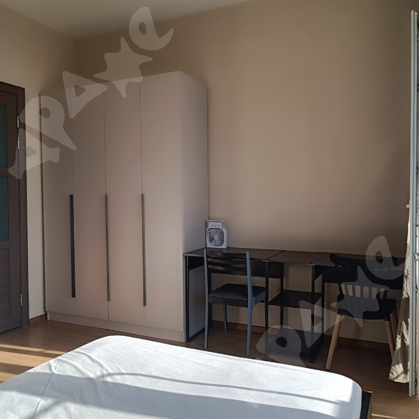 Мебель: кровать 160 на 200, с очень удобным матрасом, стол, стулья, большой шкаф-купе.