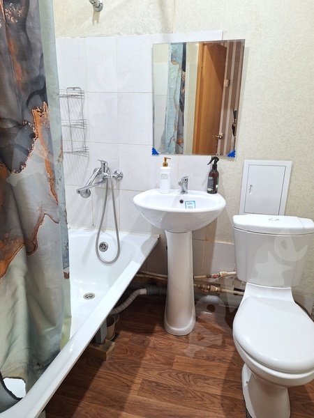 Сан узел совмещение, ремонт косметический, все как на фото. Техника есть вся для проживания (холодильник, микроволновая, чвйник, эл/плита, стир машина), все в рабочем состоянии.
