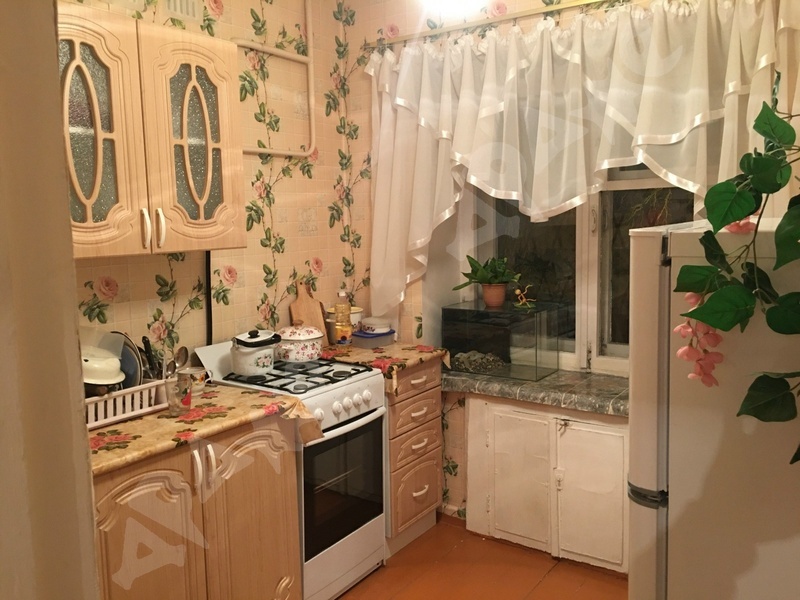 В квартире имеется вся необходимая мебель: раскладывающийся диван, шкафы, стол, стулья, комоды, большой кухонный гарнитур.