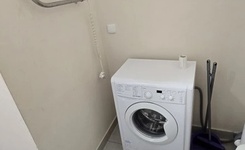 Ванная комната оснащена душевой кабиной, стиральной машиной, электрическим полотенцесушителем.