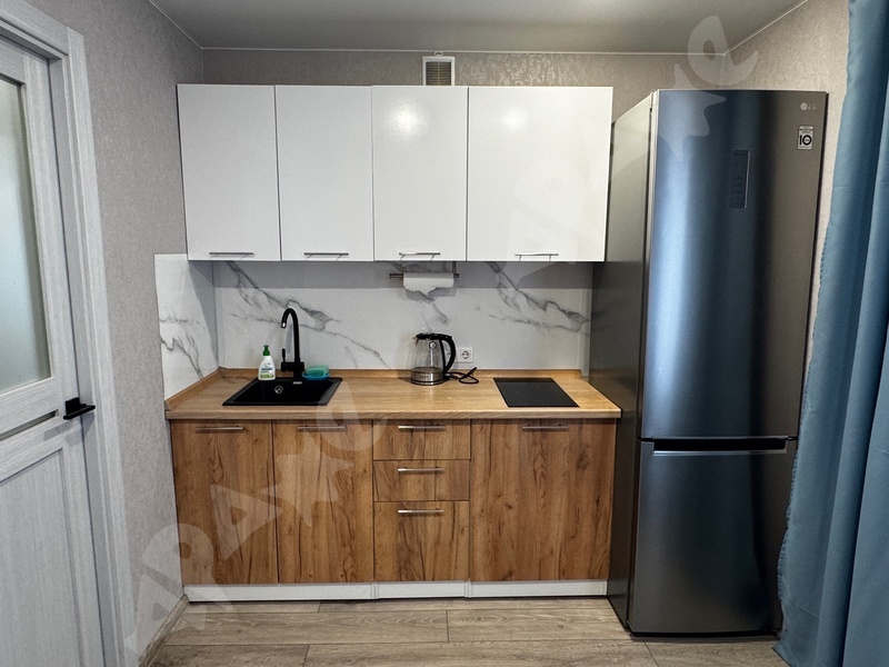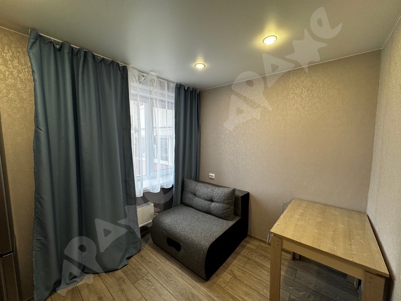 Квартира площадью 34,5 кв. м. этаж 13/16. Сдаётся на длительный срок, от 6-ти месяцев. Помещение кухни и спальни изолированы. Есть большая застекленная лоджия. Фото соответствуют. Квартира в отличном состоянии, сделан качественный ремонт, новая техника (холодильник, стиральная машинка, варочная панель), установлен стильный кухонный гарнитур, современная прихожая. В комнате раскладной диван, большой шкаф купе, письменный стол, дополнительно на кухне еще одно спальное место.