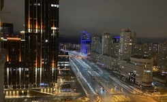 Квартира на 24- м этаже с панорамным видом, квартира оборудована отдельной гардеробной комнатой, кухня с посудомойкой, большой холодильник, микроволновка, чайник, кровать с подъемным механизмом для хранения вещей, шкаф, комод.