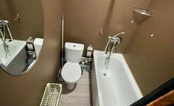 В ванной комнате находится стиральная машинка. Вся квартира чистая и ухоженная, здесь всегда приятно проводить время.