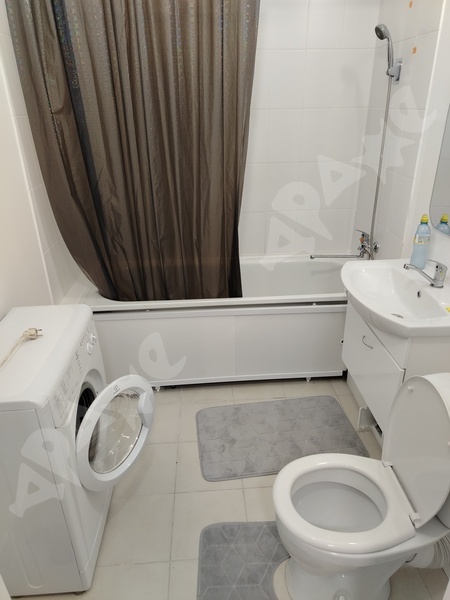 В ванной комнате находится стиральная машинка. Вся квартира чистая и ухоженная, здесь всегда приятно проводить время.