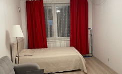 Этаж 22 из 25, площадь 32 м2, залог в размере ежемесячной оплаты 33000 руб. (можно разделить), мебель: оборудованная кухня, диван, вместительный шкаф, тумба, холодильник, стиральная машина. С животными и детьми можно, курение в квартире запрещено.