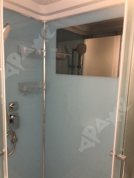 Техника в ванной: душевая кабинка с тропическим душем, стиральная машина. Оборудованная кухня: чайник, электрическая плита на две конфорки, холодильник, микроволновка.