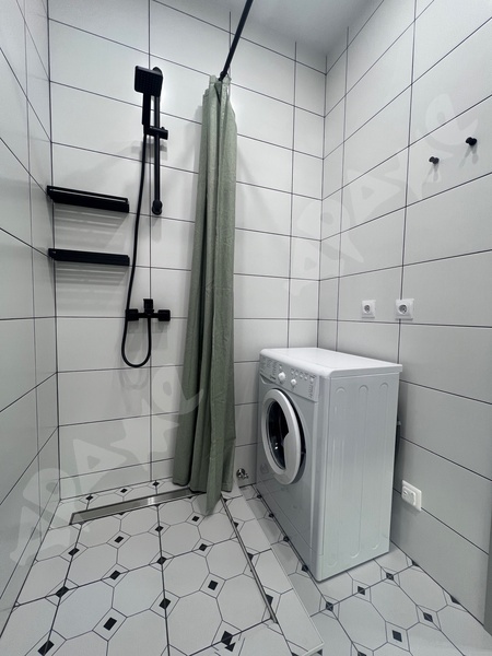 В ванной комнате находится стиральная машинка. Вся квартира чистая и ухоженная, здесь всегда приятно проводить время.