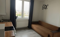 Квартира со всем необходимым, этаж 9/17, есть балкон, рядом продуктовые магазины, бесплатные парковочные места + платные стоянки. До центра 25 минут пешком.
