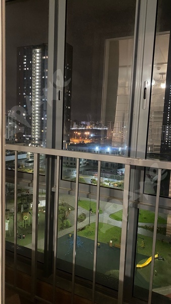 Квартира на 19 этаже с видом на парк; из мебели : кровать, стеллаж, кухонный гарнитур, диван, холодильник; все, что есть на фото + стиральная машина и микроволновка.