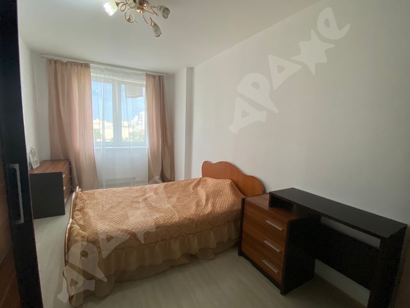 Площадь 50 кв. м, этаж 2/12, две изолированные комнаты, большой балкон, теплая квартира, ремонт косметический. Из мебели в спальне: большой шкаф, двуспальная кровать, прикованная тумбочка. В гостиной письменный стол со стулом, комод. Полностью оборудованная кухня с холодильником, посудомоечной машиной, микроволновой печью, чайником.