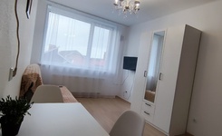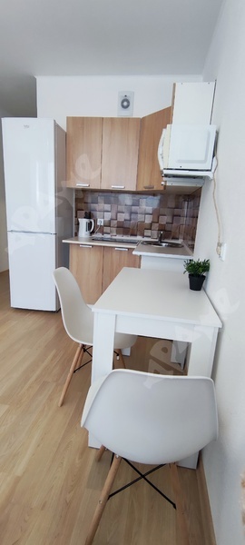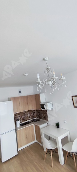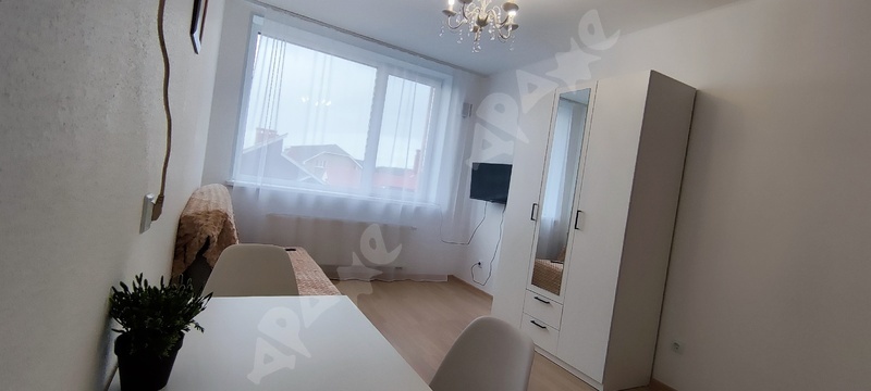 Телевизор, обувница, чайник, стол со стульями, шкаф, холодильник, микроволновка, стиральная машина и вся необходимая мебель для комфортного проживания.