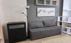 1-комн. квартира. С 3 марта. Квартира на 9м этаже, окна во двор. В квартире имеется все необходимое для проживания. Мебель: диван, шкаф, комод, гардеробная, кухонный гарнитур, стол угловая мебель. Техника: холодильник, варочная поверхность, духовой шкаф, стиральная машина, микроволновка, чайник, встроенный фильтр для воды.