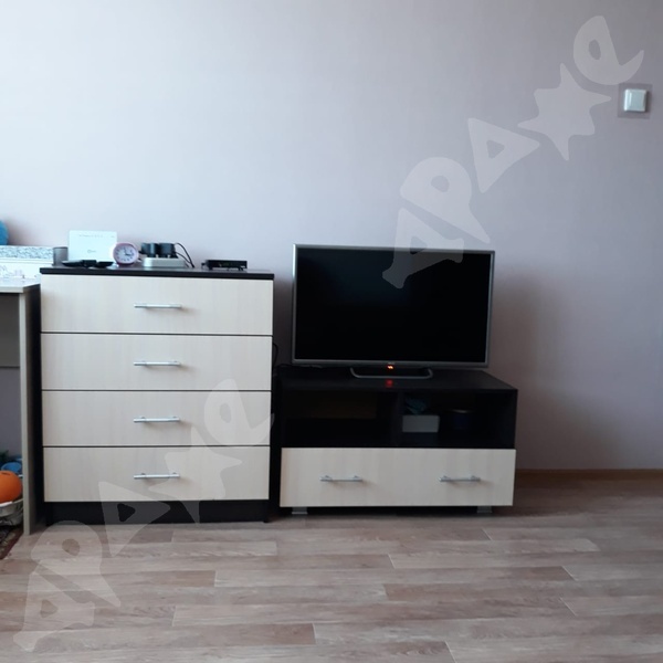 • Для комфорта: Просторная комната с диваном и шкафом-купе, комод, письменный или обеденный стол.