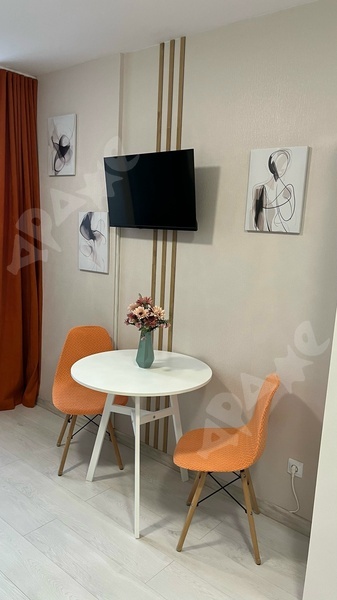 Сдается на длительный срок новая, со свежим ремонтом и мебелью квартира-студия в современном районе. Квартиру изначально планировали сдавать посуточно, поэтому есть все и даже больше: фен, банные полотенца, постельное белье,утюг, посуда, столовые приборы, бокалы,стаканы на 4 персоны,новая сковородка ,кастрюля ,новое ведро швабра .В квартире есть вся необходимая техника: холодильник, микроволновая печь, чайник, смарт-ТВ, стиральная машина, фен,