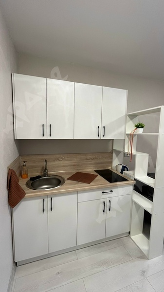 Показать полностьюСдается 1комнатная квартира-студия 30 м2. Большая лоджия. Полностью укомплектована современной мебелью (кухонный гарнитур, диван-кровать, шкаф, стол и стулья, прихожая, тумба под ТВ, журнальный столик); бытовой техникой (холодильник, стиральная машина, СВЧ-печь, электроплита, телевизор, пылесос, чайник, утюг); всеми нужными бытовыми мелочами (гладильная доска, сушилка для белья, зеркала, постельные принадлежности, полотенца, часы, мусорные ведра, коврики и др). Можно заехать и жить сразу без дополнительных затрат. Конечная остановка 83 автобуса, рядом лес. Страховой депозит 20 000 руб. Желательно проживание одного некурящего человека без домашних животных.
