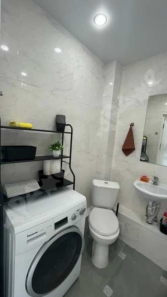 Есть вся необходимая мебель и техника: кровать с хорошим ортопедическим матрасом, вместительный шкаф, обеденный стол, стулья, холодильник, варочная поверхность с духовым шкафом, стиральная машина, чайник. Шторы блэкаут. В ванной и коридоре теплый пол.