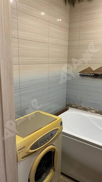 Кухня оснащена плитой и мебелью. Из комнаты есть выход на лоджию. Санузел раздельный, оформлен в светлых тонах и оснащен современной сантехникой.